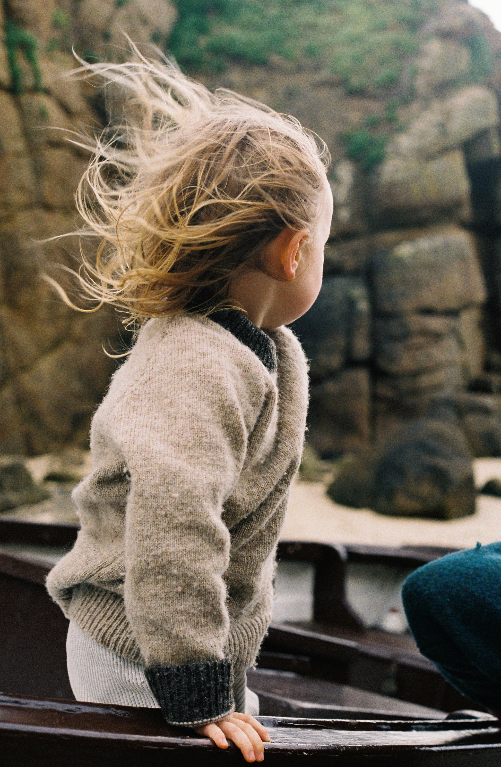 Heavier and thicker than The Mermaid and The Sunset, this Shetland wool is perfect for outdoorsy kids and cold houses. My children wear these outside all winter - super warm and virtually waterproof, you will have little need for a coat. It will last forever and get softer over time. We love it and wear it all winter too. Buy yourself an adult jumper here.